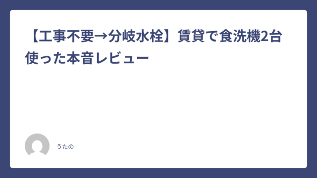 食洗機 【工事不要→分岐水栓】賃貸で食洗機2台使った本音レビュー 2026-04-17 うたの ※この記事にはアフィリエイトリンクが含まれています。リンク経由で購入いただくと、運営費として収益の一部を受け取る場合があります。記事の内容 …