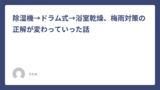 季節家電 除湿機→ドラム式→浴室乾燥、梅雨対策の正解が変わっていった話 2026-04-22 うたの 梅雨のジメジメ、共働き賃貸だと地味にきつい 共働きで日中は二人とも家にいないので、梅雨の時期は窓を閉めっぱなしで出勤します。 …