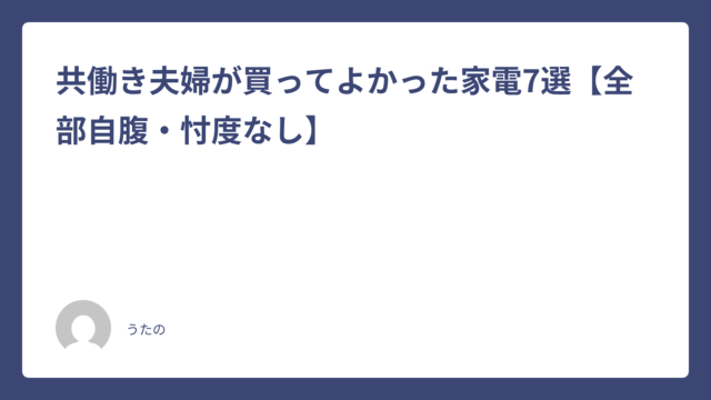 冷蔵庫 共働き夫婦が買ってよかった家電7選【全部自腹・忖度なし】 2026-04-27 うたの ※この記事にはアフィリエイトリンクが含まれています。リンク経由で購入いただくと、運営費として収益の一部を受け取る場合があります。記事の内容 …